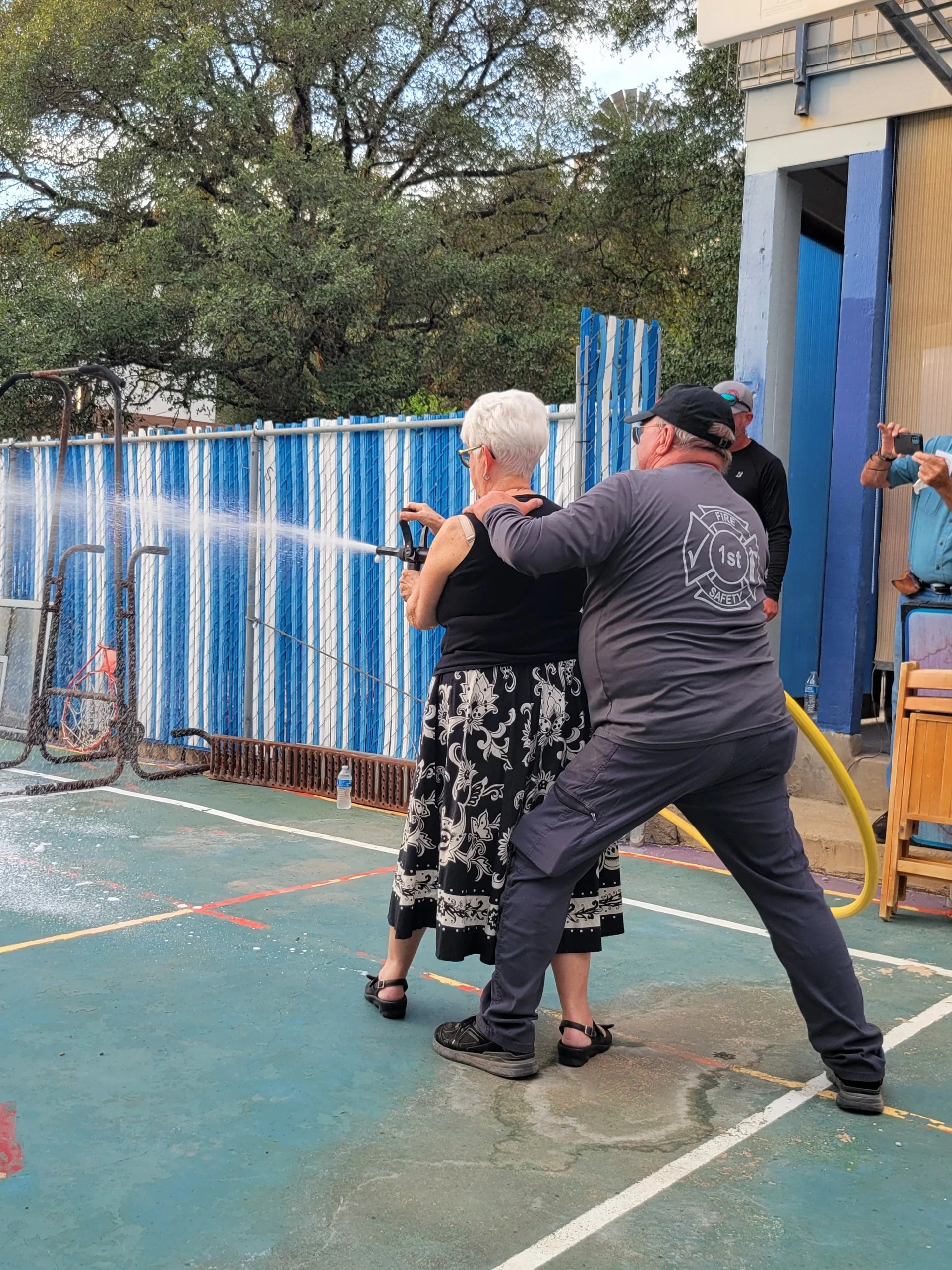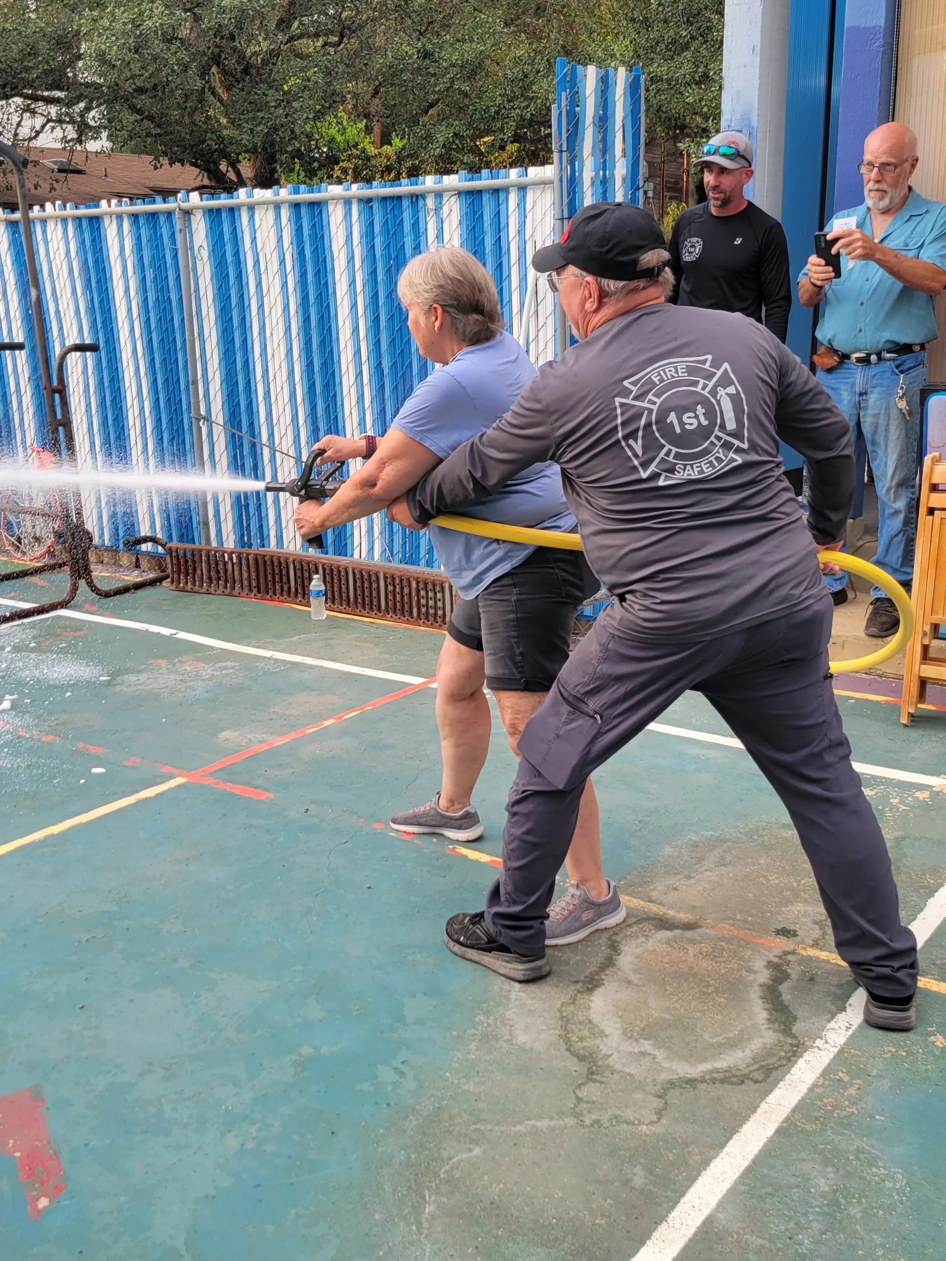 Brigid Shea attended the event and was the second volunteer to try out the high pressure hose.