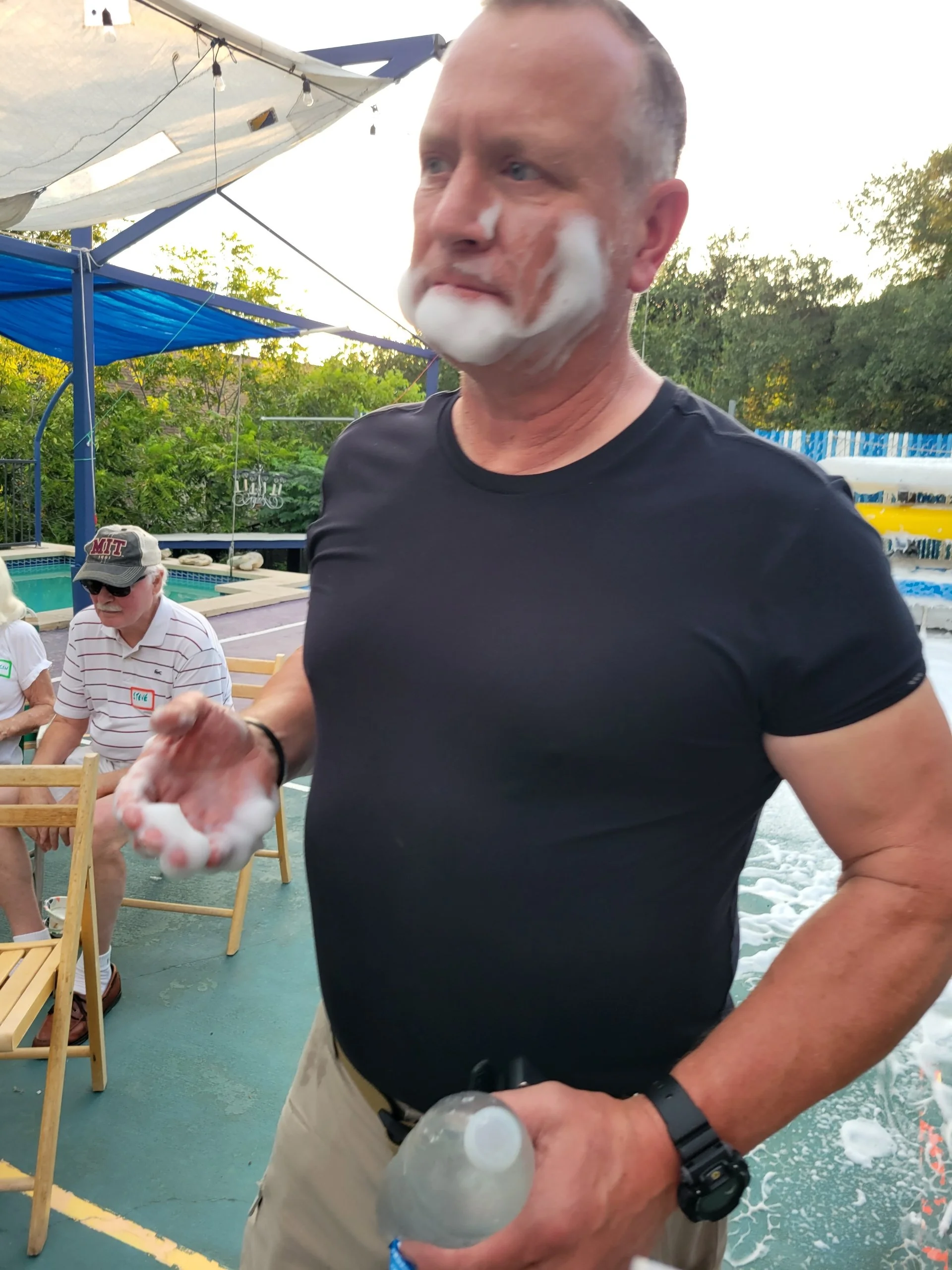 2025-26 CTCA President Karl Holdren demonstrates how nontoxic the foam is.